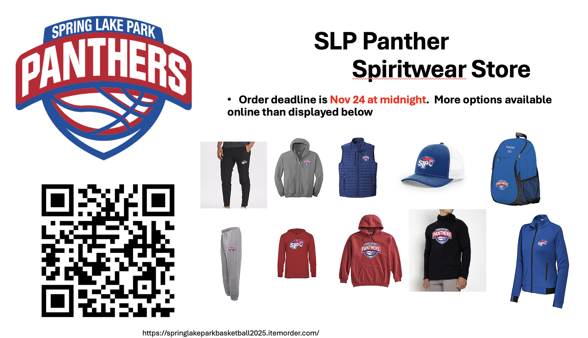 Orders will be accepted now through November 24 at the SLP spirit wear store.